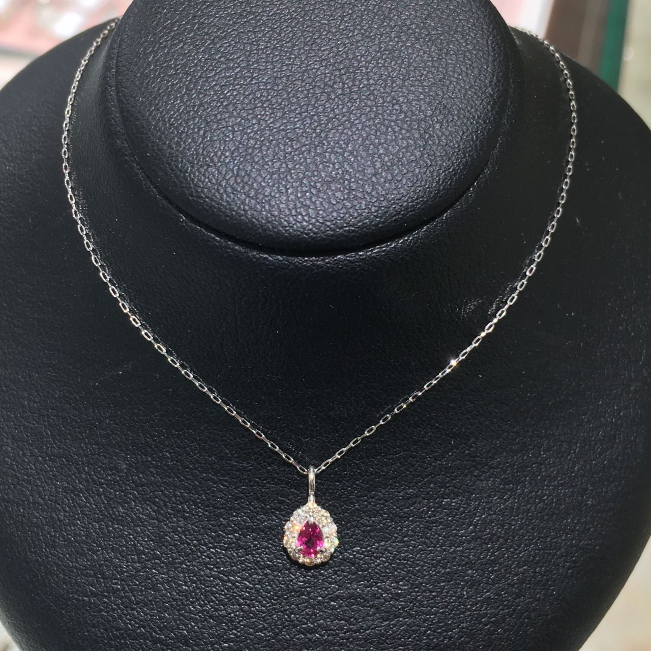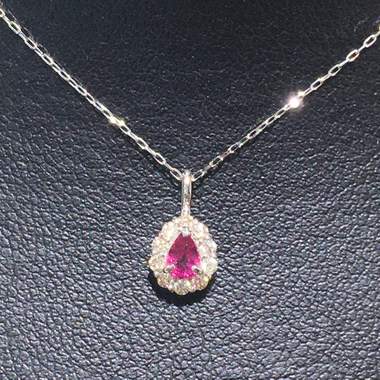 ルビーの周りにはダイヤモンドが使われており、とても華やかなで上品な印象のネックレスです。